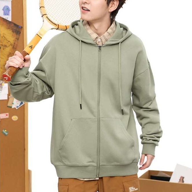 フード付きでフロントジッパーと大きなポケットが実用的な機能性を提供。