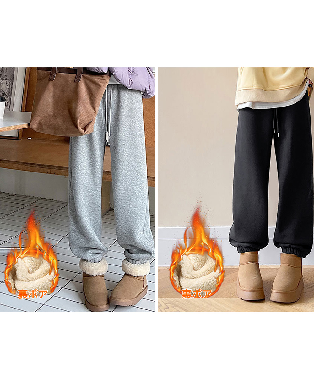 暖かなボア素材を裏地に使用した、秋冬にぴったりのあったかスウェットパンツです。