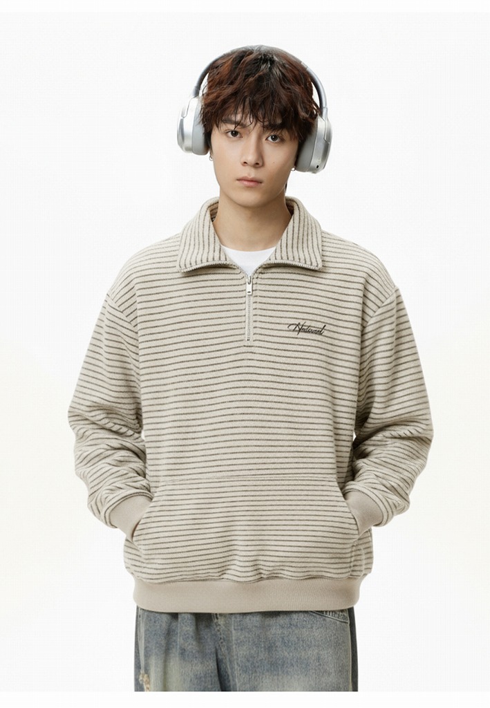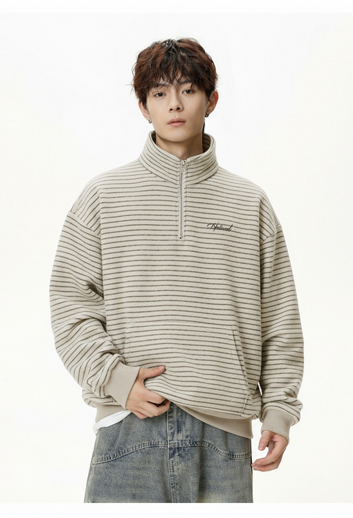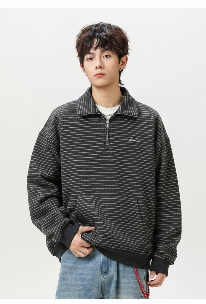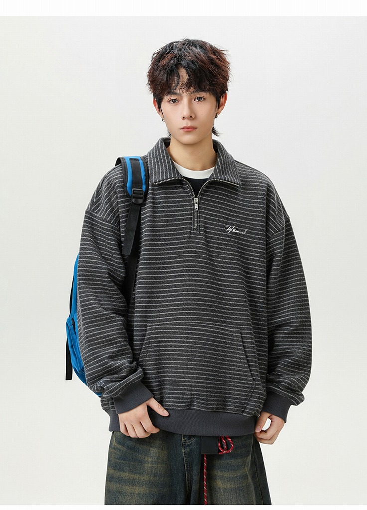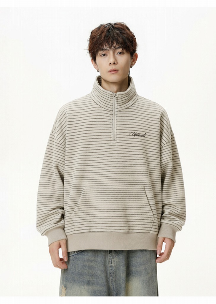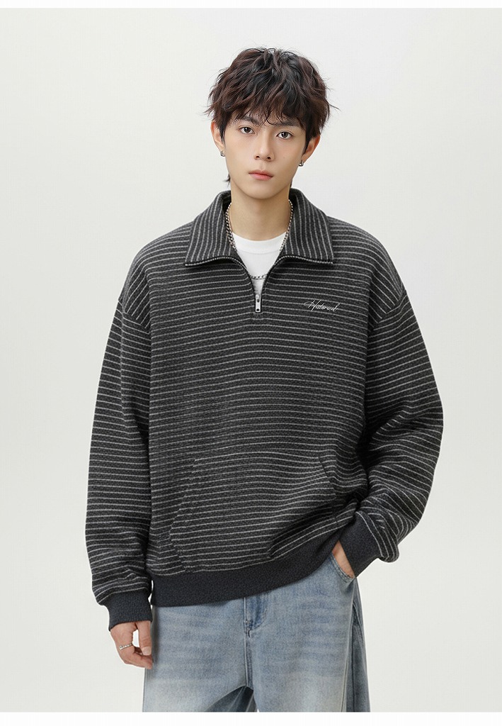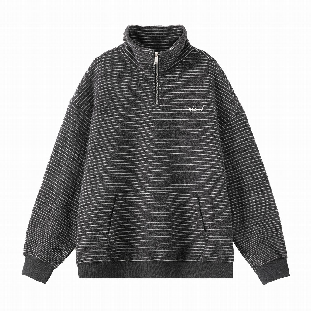 冬の新作スウェットとして登場したハーフジップタイプの立ち襟デザイン。