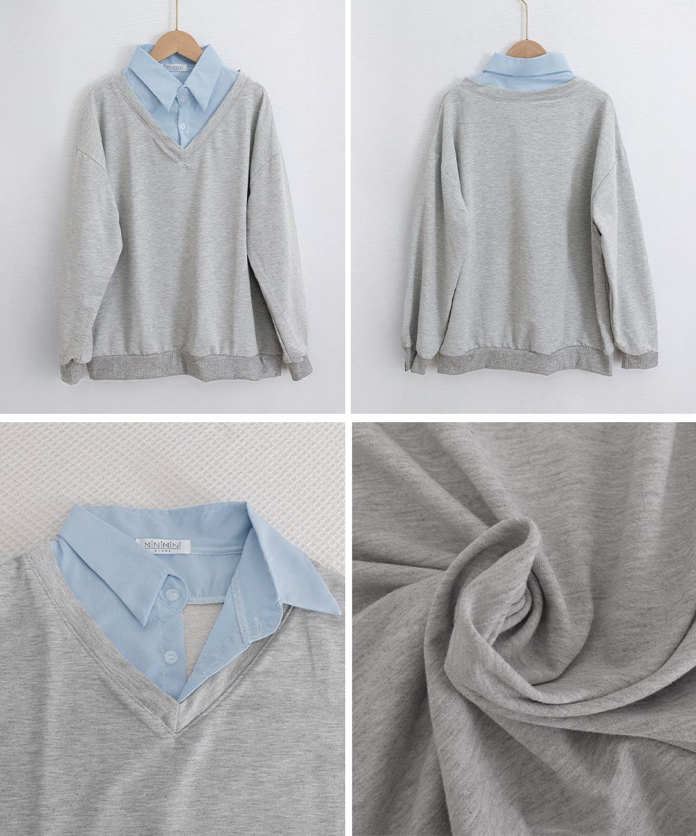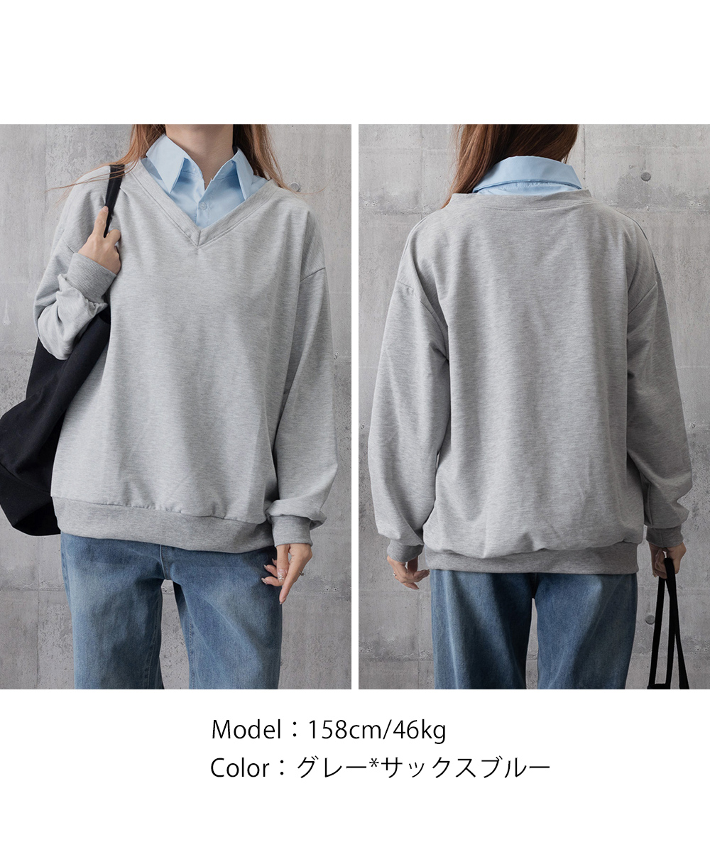 シャツをレイヤードしたようなデザインが魅力的なスウェットトップス。
